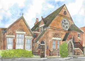 The WaterhouseTHE SUBJECT OF Janina Maher’s picture this month is The Waterhouse, the church-like Victorian building with the lovely rose window at the beginning of Gosbrook Road. Today the building has been converted into flats but in fact, the building did start life as a church. In 1865–6 it was built in the Gothic style and designed by one of the most distinguished and prolific architects of the nineteenth century, Alfred Waterhouse (1830–1905). The clue of course is in the present name of the property but originally it was commissioned by Ebenezer West as Caversham’s Free Church. West was a school master from Amersham and, around the same time, he also commissioned Waterhouse to design a school building, which was called Amersham Hall, as a non-conformist boys’ school to accommodate pupils from their previous premises in Amersham. The hall is now part of Queen Anne’s School.